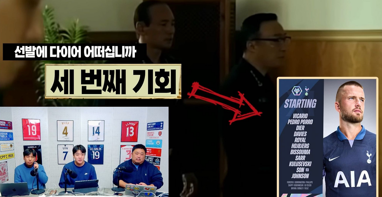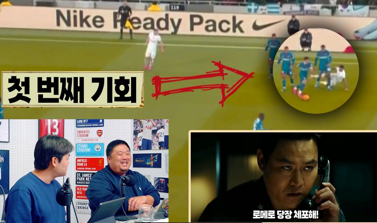 정우성 역할 그리고 수경사령관에 해당하는 주인공에는 역시 토트넘의 주장 손흥민을 넣었습니다. 그리고, 역사적 비극에 대해 시즌 초에 1등까지 올랐다가 3연패를 당하며 무너지고 있는 토트넘의 상황을 대입했습니다.