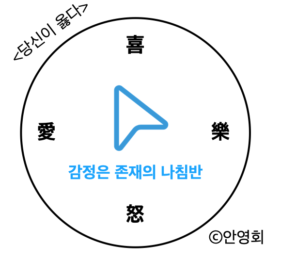 사람의 상태를 인지할 때는 존재의 핵심인 감정을 드려다 봐야 합니다. 저는 다음 다발말[2]을 읽으면서 감정은 나침반이라는 생각이 들어서 책 내용과 섞어 그림으로 그려 보았습니다.