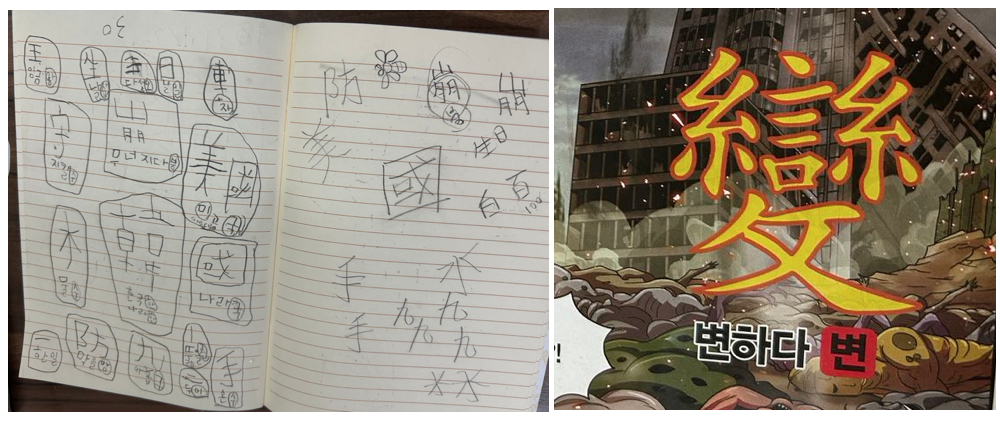 <한자 쓰기로 배우는 아이의 자기 주도 학습>을 쓴 바로 다음날에도 계속되었습니다. 아이가 어제 보던 책을 들고 오면서 시작되었죠. 혼자 읽는 대신에 저에게 글을 쓴다고 보여주었고, 저는 어제 쓴 것을 상기시켰습니다.