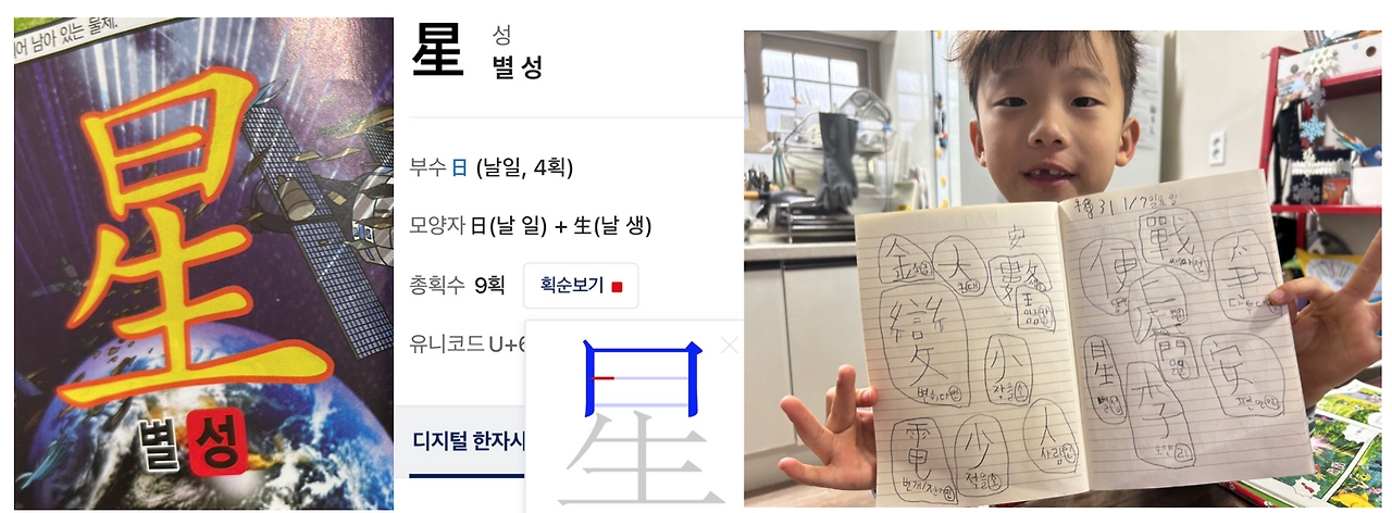 마지막으로 책에서 '별 성'자를 하나 더 추가했습니다. 아이에게 '마침'을 인식시키고 성취감을 느끼게 하기 위해 의도적으로 사진을 찍자고 했습니다.