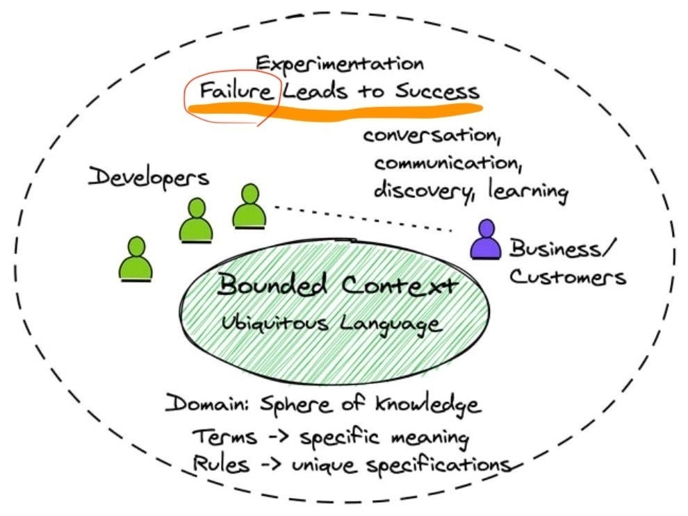 These aspects of domain-driven design aim to foster a common language shared by domain experts, users, and developers—the ubiquitous language. The ubiquitous language is used in the domain model and for describing system requirements.