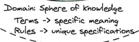 도메인은 시스템을 둘러싼 지식의 영역(domain)을 말합니다. 지식들은 용어(Terms)의 형태로 의미를 담고, 관계를 꾸리는 과정에서 규칙(Rules)들이 드러날 듯합니다.