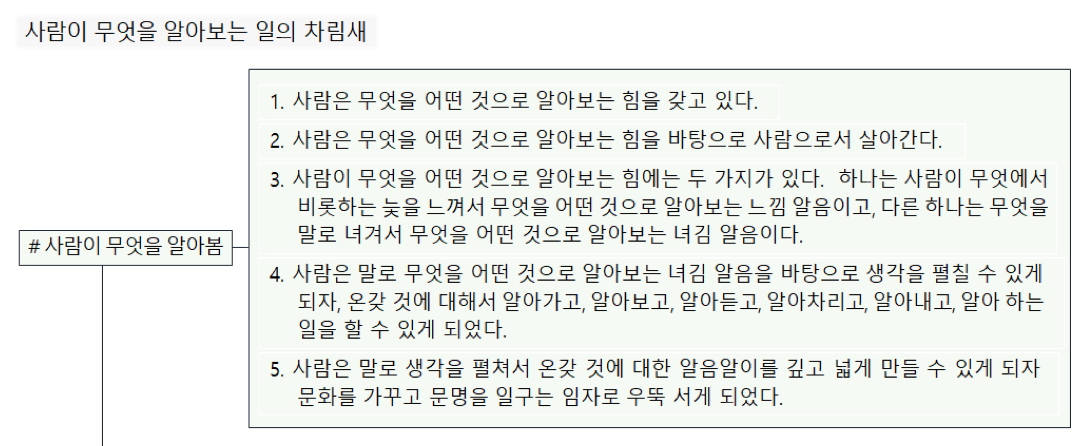 1. 사람이 사람으로 살아가는 것은 <이때> <이곳>에 마주한 <이것>을 어떤 것으로 풀어서 알아보는 일에 바탕을 두고 있다.
