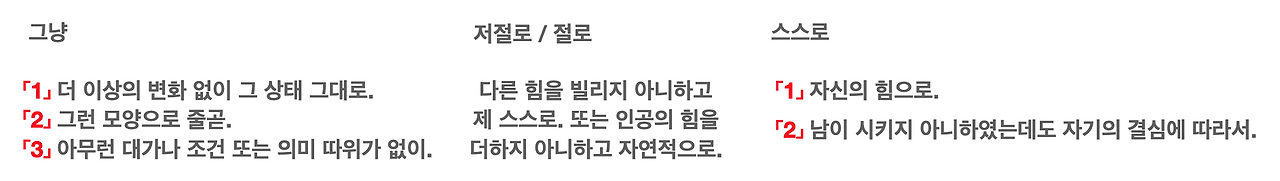 그냥/절로/스스로가 같은 뜻인지 궁금해졌습니다. 사전을 찾아봅니다.