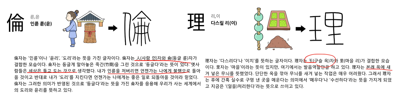 윤리의 뜻도 묻고 따져 봐야겠죠. 倫(인륜 륜)과 理(다스릴 리)를 씨말로 하는 낱말입니다.