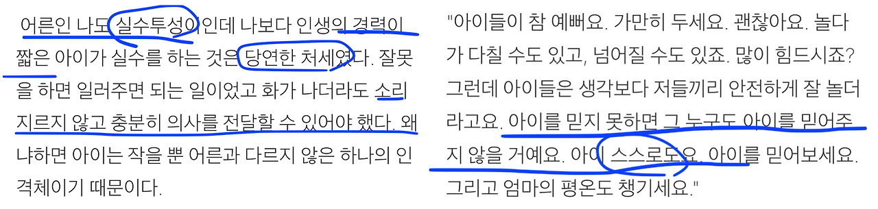 여기까지 쓰고 난 다음날 제 글에 라이킷한 분들 글을 무심히 클릭하다가 아리스 님의 <힘 빼고 육아햐기>를 읽었습니다. 구구절절 공감할 만한 이야기였지만, 특히 다음 내용은 꼭 기억하여 실천하고 싶었습니다.