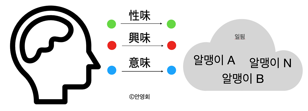 흥미라는 단어 때문이죠. <맛보는 과정을 통해 본성이 습성으로 드러나는 배움>을 쓰며 그린 그림에 등장하는 단어입니다.