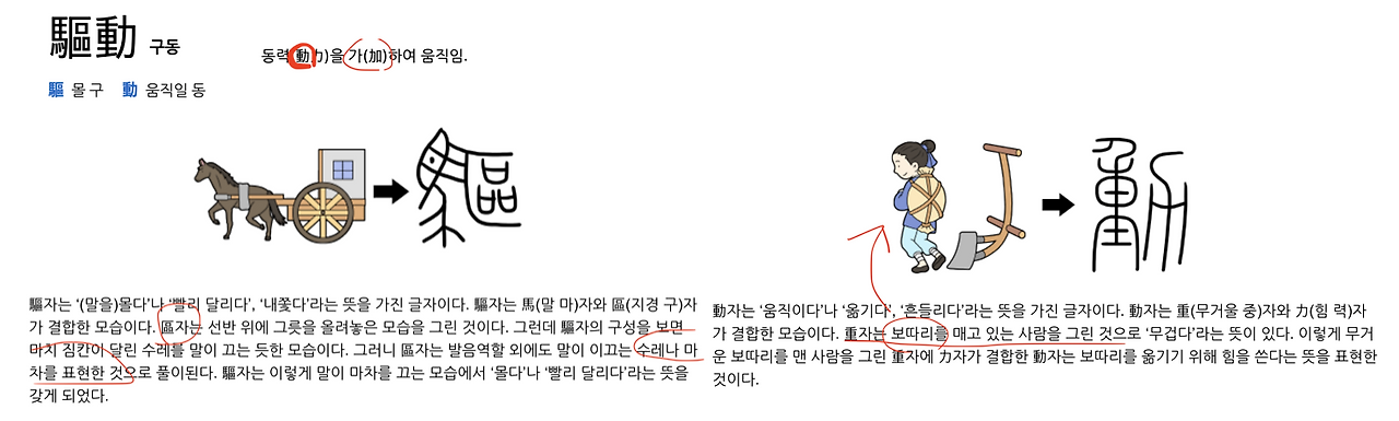 마지막으로 앞에서 미루었던 구동이란 표현이 마음에 드는 이유를 살펴보겠습니다. 일단 사전을 찾아봅니다.