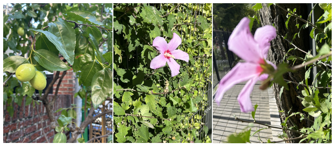 그래서 살아있는 존재를 볼 때 연민의 마음을 품었더니, 늘 지나던 동선인데 평소 보이지 않던 울타리를 뚫고 나오는 무궁화와 무궁화 꽃 뒷면에 서식하는 곤충들의 생태가 식의 행동이 이어졌습니다.