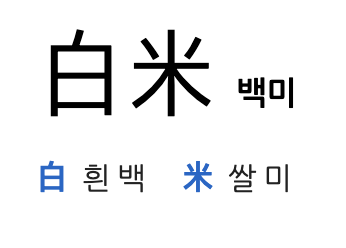 아이가 '아빠 밥이 다 되었나 봐요?'라고 말했습니다. 뒤이어 어떤 이야기를 하는데 아이가 '백미'를 모르는 눈치였습니다. 그래서 휴대폰으로 한자 사전을 찾아 '백미' 구성(?)을 보여주었습니다.