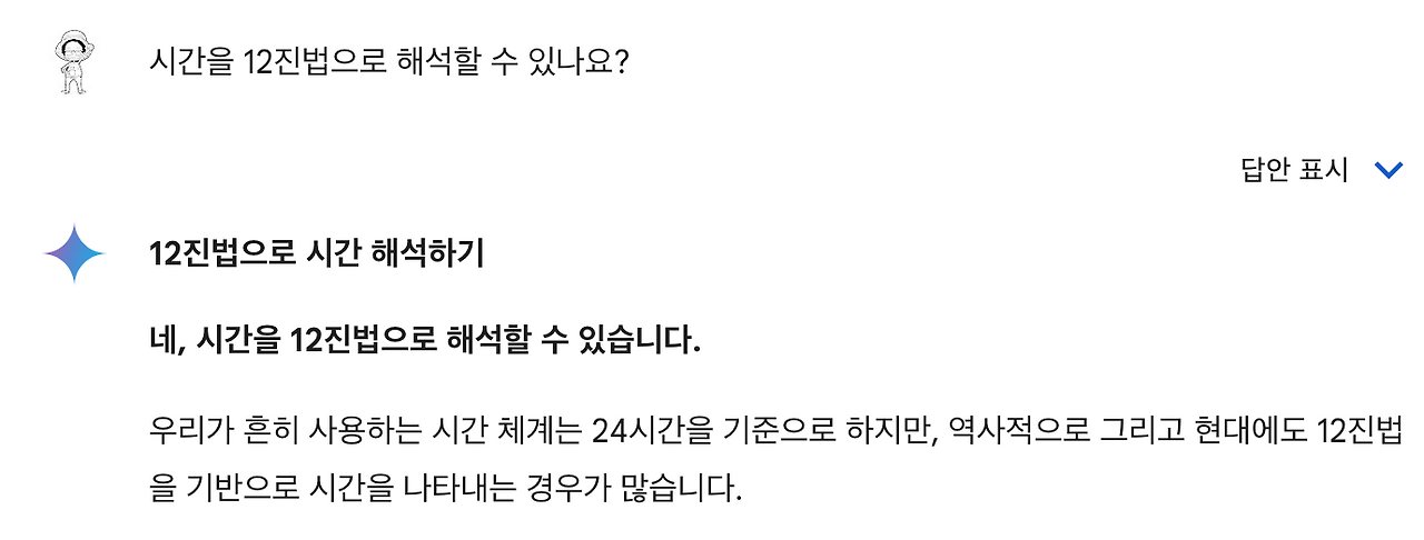 내친김에 요일을 7진법으로 볼 수 있는지 물었습니다. 제미나이의 답은 수학적 규칙성으로 인해 연결해 볼 수는 있지만 차이를 설명해 주었습니다. 그 덕분에 진법과 주기의 차이란 점을 확인할 수 있습니다.