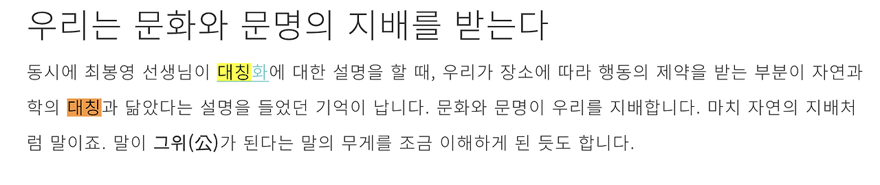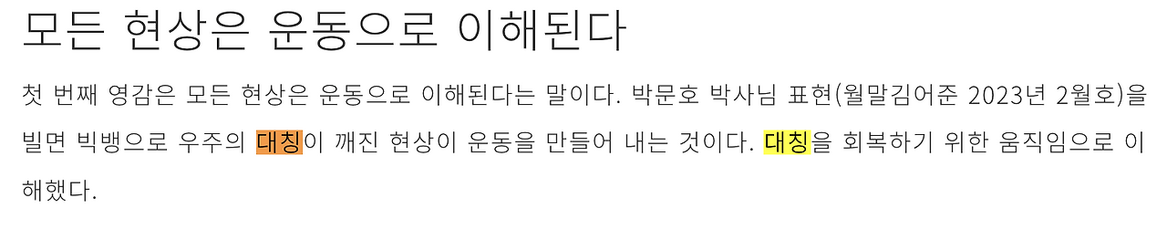 이외에 <유튜브 물리학 강의가 작명을 돕는 우연>에도 대칭이 등장하는데 이는 과학적 맥락에서 다루는 편이 좋을 듯하여 뒤로 미루고 글을 마칩니다.[1]