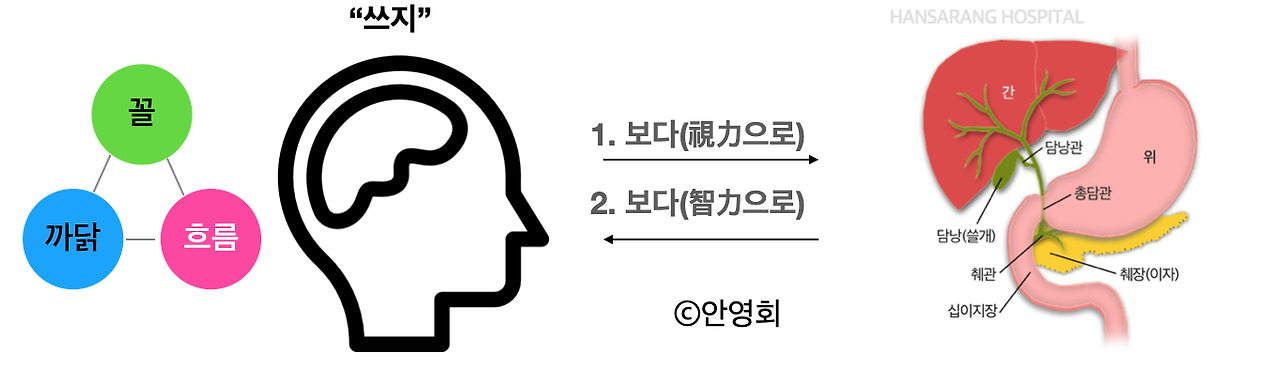 쓸개에서 전이가 일어나서 '쓰지'와 '쓰다'로 나아가죠.