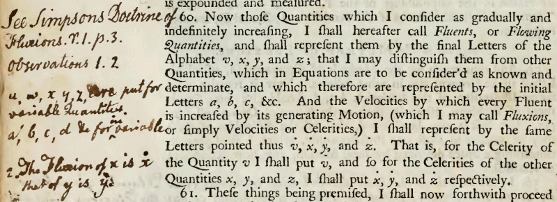 그리고 개인적으로는 '나눌 수 없는 증가량'이라는 모멘트의 정의 그리고 '연속적으로 변화하는 값'이라는 플럭션의 정의는 직관적이라 그런지 호감이 갑니다. 그래서 수학 공부를 떠나서 조금 더 훑어보기로 합니다. 위키피디아를 봅니다. 깊이 들어갈 필요는 없을 듯합니다. 첫 페이지면 충분하네요.