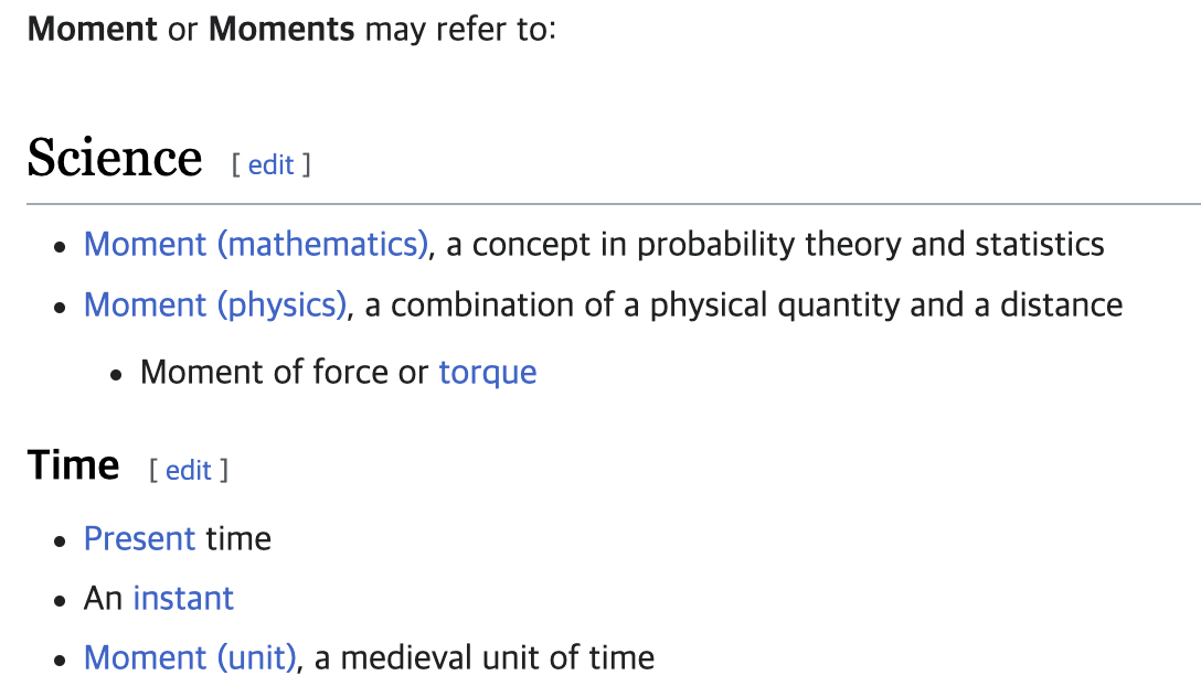 모멘트는 확률과 통계의 개념이라고 합니다. 뉴턴의 정의와는 조금 다른 면이겠죠? 뉴턴의 모멘트는 물리학 개념과 상응하겠네요. 그래서 운동과 기하와 결부된 미분이라는 한계가 있었군요.