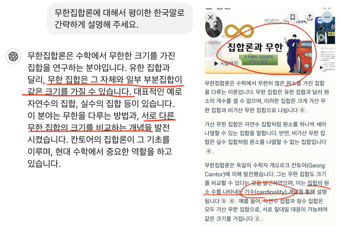 [3] 사용한 프롬프트는 다음과 같습니다: 무한집합론에 대해서 평이한 한국말로 간략하게 설명해 주세요.