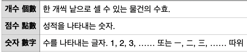 수는 <수와 숫자의 기원>에서 한번 살펴보기는 했네요. 그래도 비슷하게 사전을 찾아봅니다.