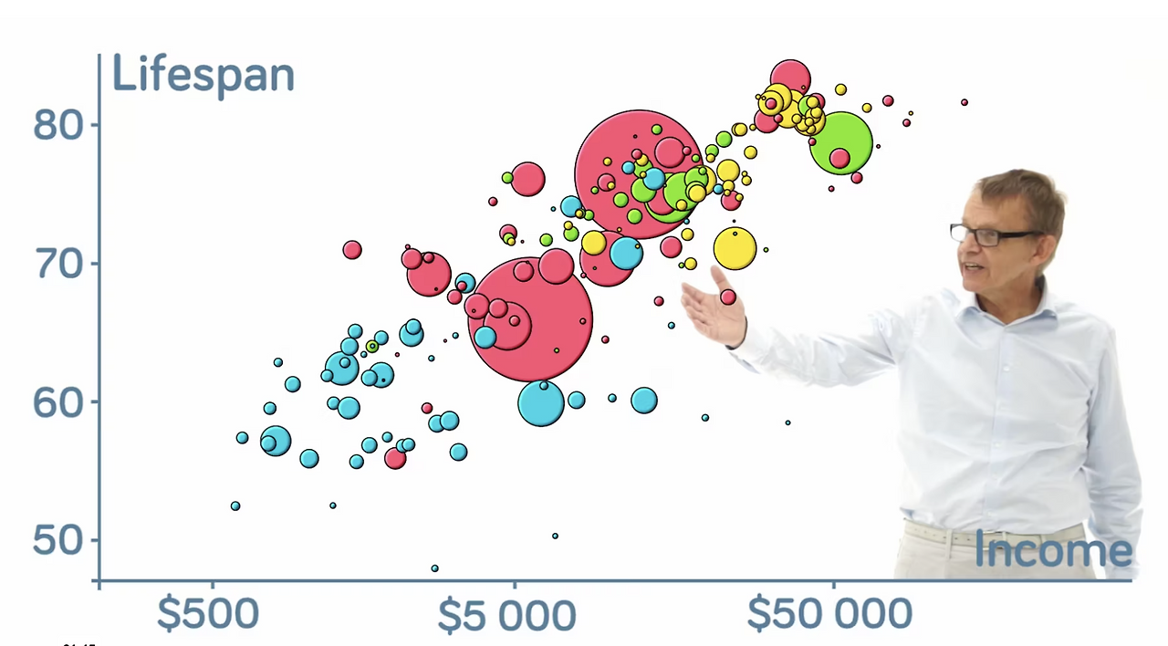 물론 그는 '도시화' 자체에는 관심이 없었기에 그런 표현을 쓰지는 않지만, 그가 세계를 있는 그대로 보는 방법을 시각화한 그래프를 보면 그러한 추세가 데이터를 기반으로 잘 나타나 있습니다.