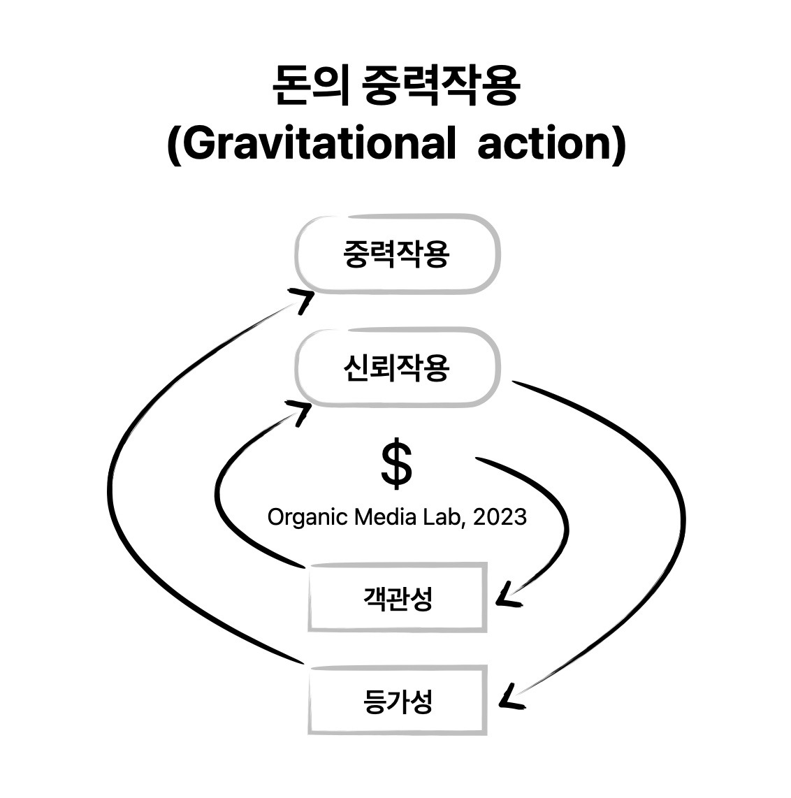 그래서 우리 삶의 수단인 돈은 목적으로 쉽게 승격된다. <중략> 매개체로서 돈이 개입되는 순간, 돈은 열심히 일하기 시작한다. 스스로 매개한 관계의 지배자가 되기까지. <중략> 돈의 등가성은 돈의 중력 작용을 일으키는 원리다.