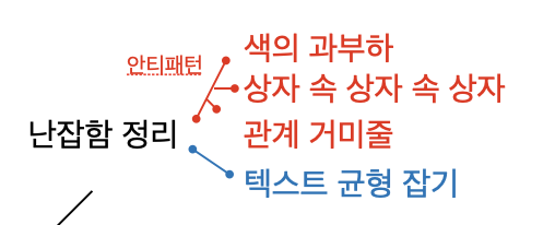 고맙게도 저자는 패턴과 안티패턴의 이분법 틀을 계속 유지합니다. 난잡함 정리는 그 이름에서 드러나듯 안티패턴 위주입니다. 하지만, 하나의 패턴을 포함하여 모두 네 가지 항목입니다.