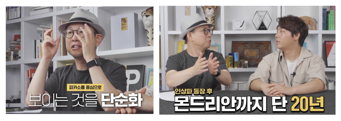 이제 다시 영상으로 돌아갈 때입니다. 사진의 등장으로 인해 사진으로 찍은 내용을 따라 그릴 수 있는 일은 많은 사람들에게 용기(?)를 주었고, 똑같이 그리는 일이 메리트가 없어져 주관적 느낌이 강조되는 인상파가 탄생했다고 말합니다. 처음 들어보는 명쾌한 내러티브입니다!