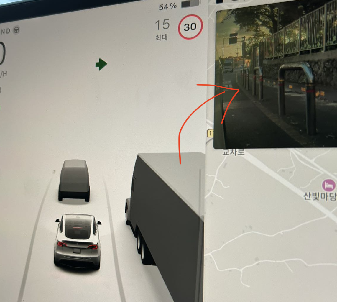 아내가 운전하는 테슬라 차량을 타고 가는데 뒷자리에 앉은 둘째 아이가 테슬라가 자기 학교를 트럭으로 인식한다면서 재밌어하던 장면에서 제가 찍어 둔 사진이 떠올랐습니다.