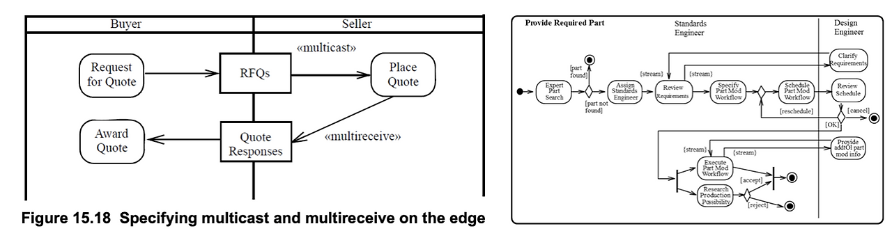 예를 들어 소프트웨어를 설명하는 관점(소프트웨어 설계)에서 액터나 사용자의 역할은 트리거로 한정하고 관심사를 소프트웨어의 동작을 표현하는 것에 두지만
