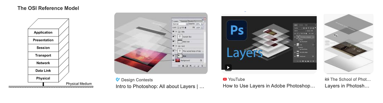 저는 아주 공교롭게 OSI 7 layers를 배우던 때에 포토샵도 함께 배웠습니다. 그런 경험 덕분에 레이어링(layering)이라는 개념을 다룰 때 아키텍처 패턴뿐 아니라 레이어를 사용하는 도구에서 흔히 쓰던 기법도 모두 레이어링이란 개념으로 묶어서 인식할 수 있었습니다.