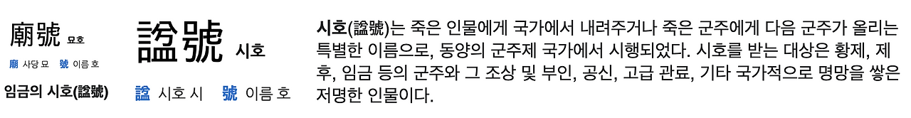 그리고 한자 사전을 찾다가 시호(諡號)란 표현도 처음 보아서 사전을 찾아보았습니다.