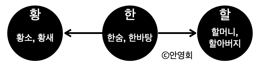 옛말로 '하다'는 '크다'라는 의미를 지닌 말이었습니다. 여기서 한쇼, 한새, 한숨, 한아비, 한어미 등의 단어가 만들어졌어요. 즉 한쇼란 의미적으로는 큰 소를 뜻하나, 결과적으로는 다 성장한 수소를 지칭하는 말로 쓰이게 되었고, 이 말이 변하여 황소란 어형이 된 것입니다.