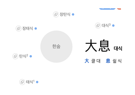 '한자가 '황'자로 변화한 단어들과는 다르게 원형 '한 자가 남아 있는 경우도 있습니다. 한숨이 그렇지요. 근심 걱정이 있어 내쉬는 숨을 한숨이라고 보통 생각하기 마련입니다. 그러나 한숨은 기원적으로 '큰'이란 뜻에서 시작한 크게 내쉬는 숨을 말합니다.
