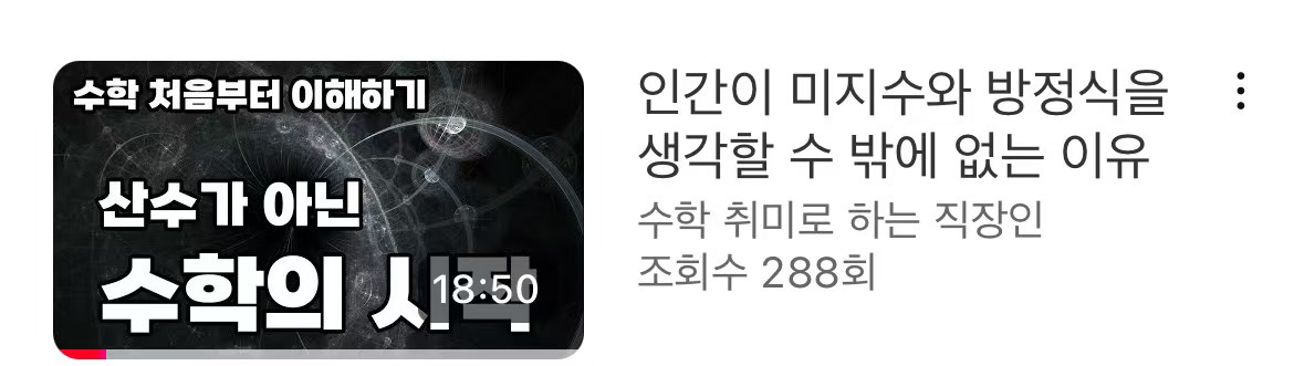유튜브 추천으로 만난 '산수가 아닌 수학'이라는 문구는 지적 호기심을 불러일으켰습니다. '뭘까?' 하는 마음에 영상을 클릭해서 보게 되었습니다.