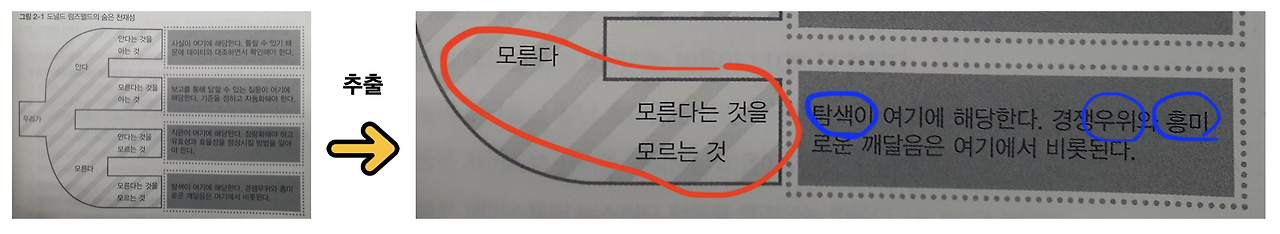 unknown unknowns 하면 가장 먼저 떠오르는 그림은 바로 <린 분석>에서 배운 로널드 럼즈펠드의 4분면이고, 제 나름의 생각으로 굳어진 <어떻게 내가 무엇을 모른다는 것을 알 것인가?>가 떠오릅니다.