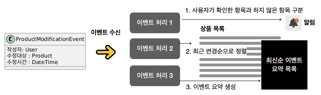 객체로 사고한다면 (당연하게도) 변경 사실 자체를 객체로 정의할 수 있습니다. OOP가 익숙한 분들은 개념적인 단계에서는 꼭 프로그래밍 언어를 떠올릴 필요는 없다는 사실을 기억하시기 바랍니다.