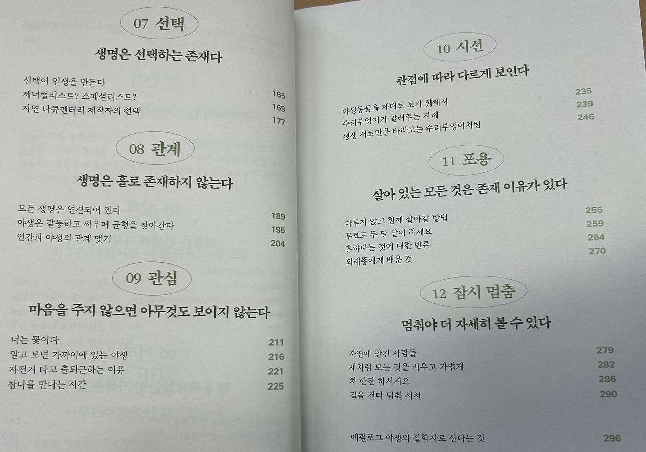 다행히 아내가 아이들과 함께 있어서 저는 짬을 내어 일반 열람실에서 시간을 보낼 수 있었습니다. 우연을 기대하며 눈에 띄는 책을 골라 훑어보았습니다. 그러는 중에 <야생의 철학자들> 목차가 눈에 들어왔습니다. 그래서, 오직 목차만 보고 드는 생각을 기록으로 남깁니다.