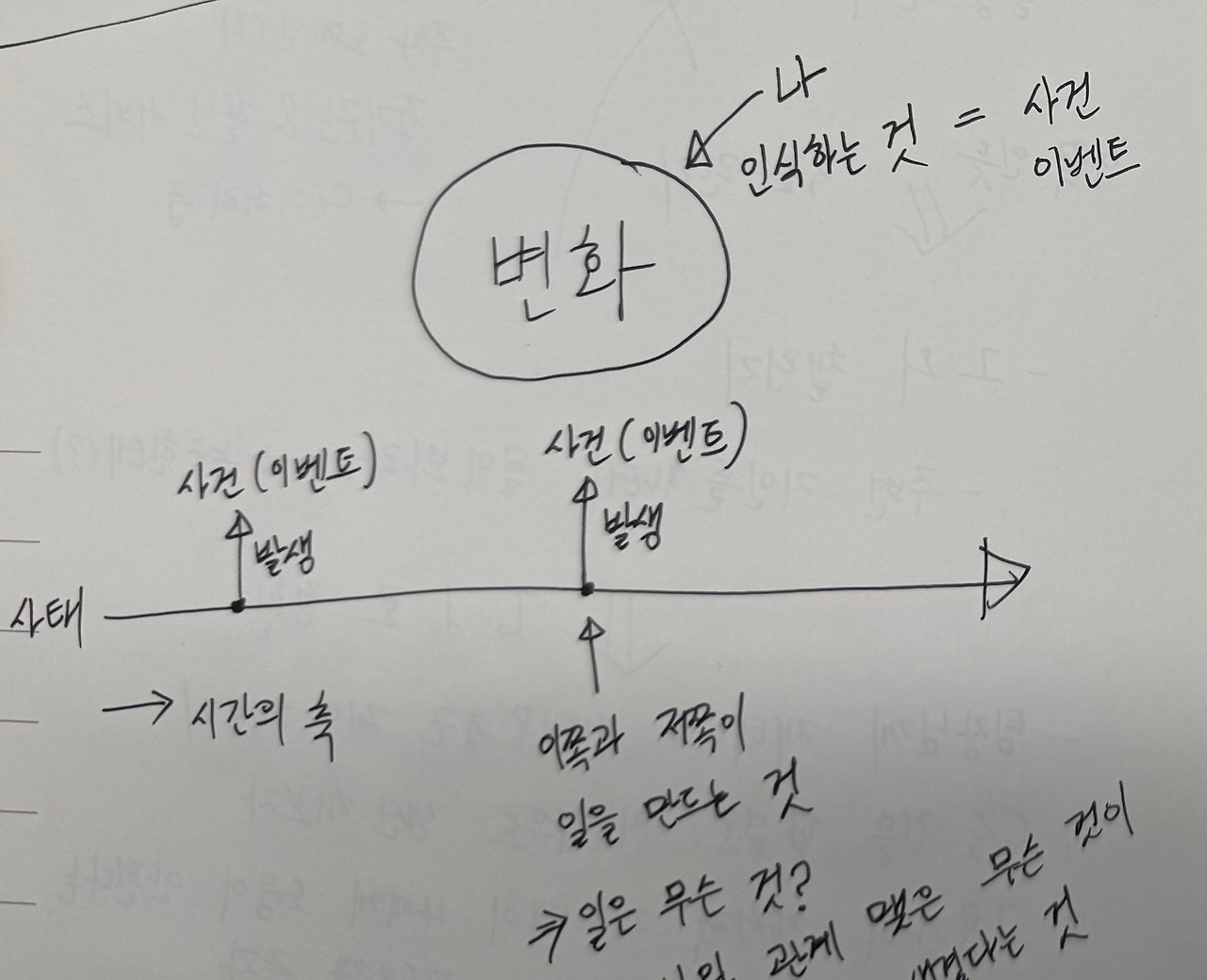그런데 우리의 인식이란 것은 삶의 위에 놓입니다. 다시 말해 시간 축 위에서 벌어지고 모든 것은 인식하기보다는 대체로 변화하는 양상에 주목하게 됩니다.