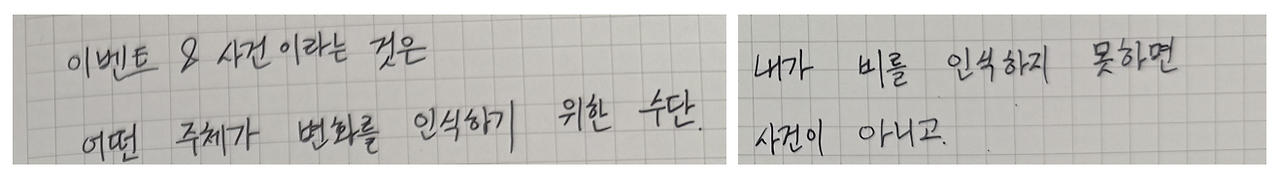 아무튼 위 메모는 객체와 사건 혹은 이벤트를 두고 동료가 고민하는 지점에서의 기록으로 해석했습니다.