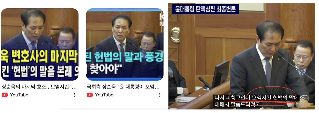 한편, 공교롭게 <군사정권의 유산과 강력한 검언유착을 이겨낸 K-민주주의>에서 언급했던 '정의사회 구현'을 말의 왜곡의 사례로 또 만납니다. 거기에 더해 말의 왜곡이라고 하니 윤대통령 탄핵심판의 명장면인 장순욱 변호사가 변론에 등장한 '오염된 헌법의 말'이 떠올랐습니다.
