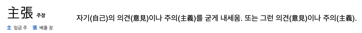 [1] 주장이라는 말이 부정적으로 쓰이는 경우가 많아서 <낱말의 뜻을 깊고 넓게 묻고 따지는 일의 소중함> 실천을 위해 한자 사전을 찾아봅니다.