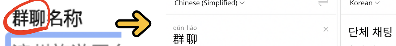 다음은 위챗 단체방을 만들며 익힌 표현들입니다. 단체방은 일대일 채팅 상황에서 초대를 하면 자연스럽게 만들어지는데, 경험상 목적을 분명하게 하기 위해 단체방 이름을 붙이는 편이 좋습니다. 이때 눈에 띈 표현이 '群聊'였습니다. 우리말로 하면, '단체 채팅'에 해당하죠.