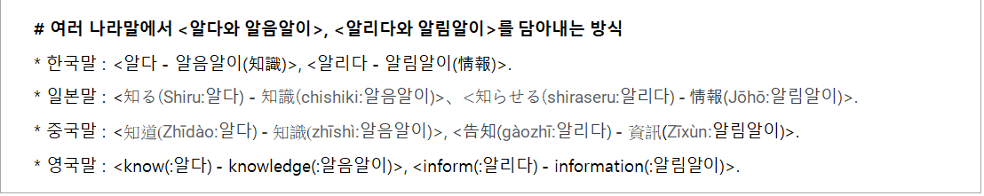 그보다는 한국 사람이 주로 쓰는 한자어 지식과 정보에 대응시켜 최봉영 선생님이 제시한 두 단어 대비가 두드러져 보입니다.