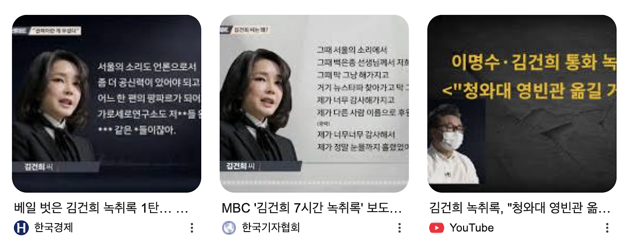 한편, 마지막으로 밑줄 그은 문장에서는 이유는 모르겠지만 '김건희 여사 녹취록' 사건이 떠올랐습니다.