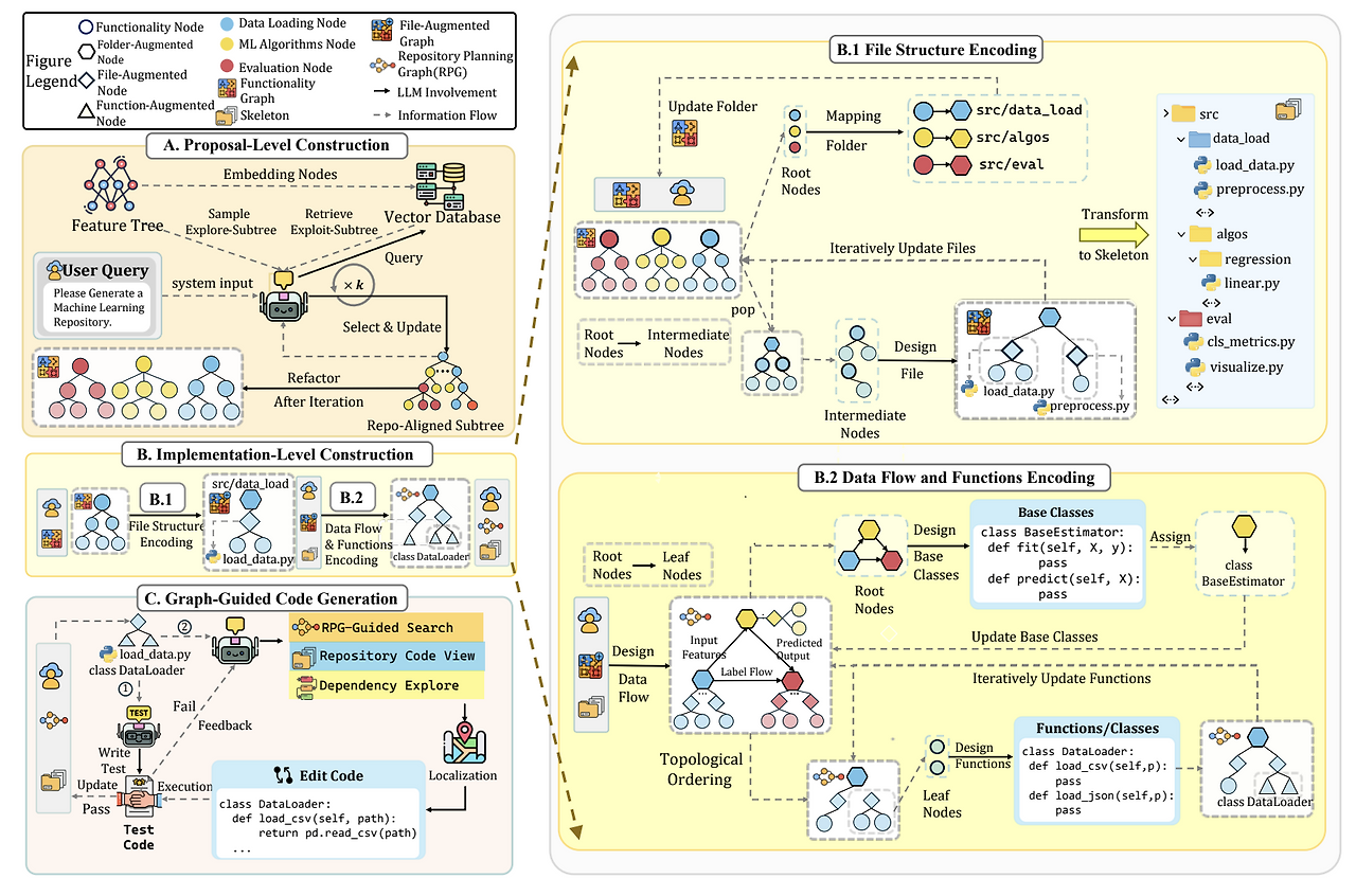 다음은 페벗 님을 통해 알게 된 논문 <RPG: A Repository Planning Graph for Unified and Scalable Codebase Generation>에 나오는 그림인데요. 이 그림이 조감도 형태로 보인 것이죠.