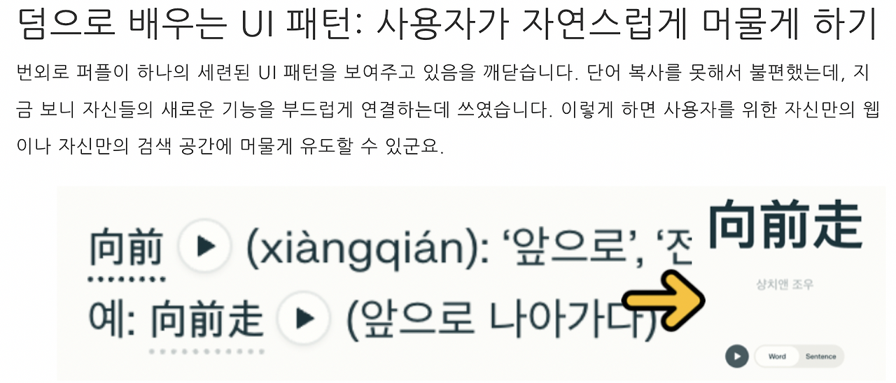 대학 다닐 때 직장과 학업을 병행하는 후배가 수업과 별도로 '동선 디자인'을 배우고 있다는 말을 듣고 낯설어서 물었던 기억이 있습니다. 백화점이나 대형 마트에 보면 에스컬레이터를 연속해서 타지 못하게 하고, 반대편으로 걷게 해서 아이쇼핑을 하도록 유도하는 일을 예로 들었습니다. 퍼플렉시티(이하 '퍼플')가 저에게 선사한 경험이 매우 비슷하다는 생각이 들었죠.