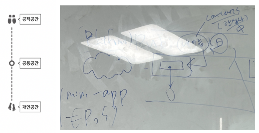 놀랍게도 이 글을 쓰고 얼마 지나지 않아 동료와 했던 회의에서 그가 시도한 디지털 마케팅 행위가 앞서 인용한 설계도와 오버랩되었습니다. 다만, 물리적 공간 대신에 인터넷 공간이라는 차이가 있고, 사람이 들고 나는 동선이 아니라 사람들이 콘텐츠 조회나 상호작용을 위해 이동하는 인터넷 공간의 이동이라는 점이 다르지만, 위상이 비슷하다는 생각에 빠르게 그림을 그리고 동료에게도 설명해 보았습니다.