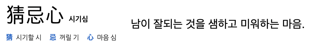 시기심猜忌心을 제대로 따져 보는 것이 중요하다는 생각에 사전을 찾아봅니다.