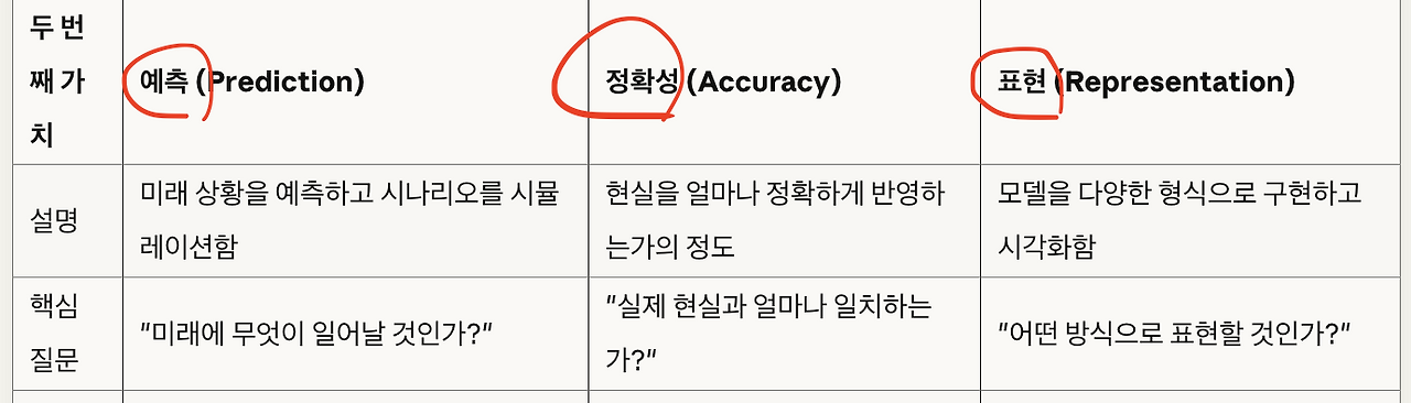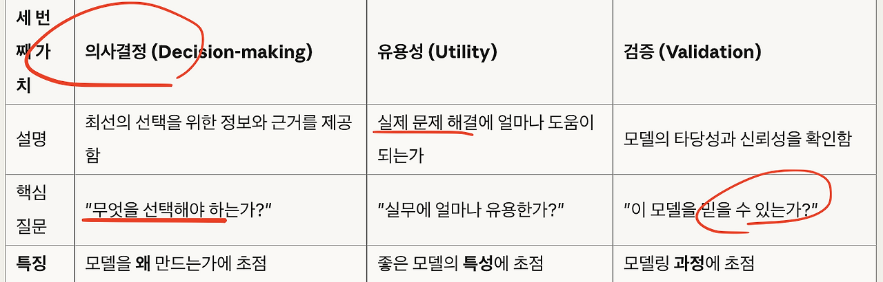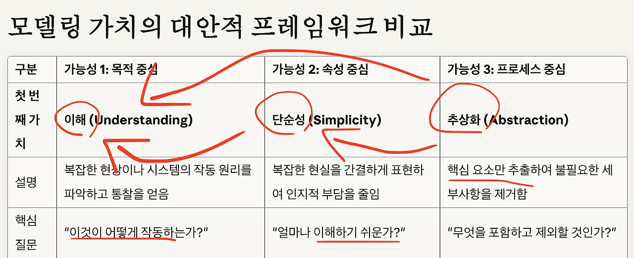 세 번째는 모델링의 가치가 아니라 모델링 결과물의 가치 평가 틀처럼 보였습니다.