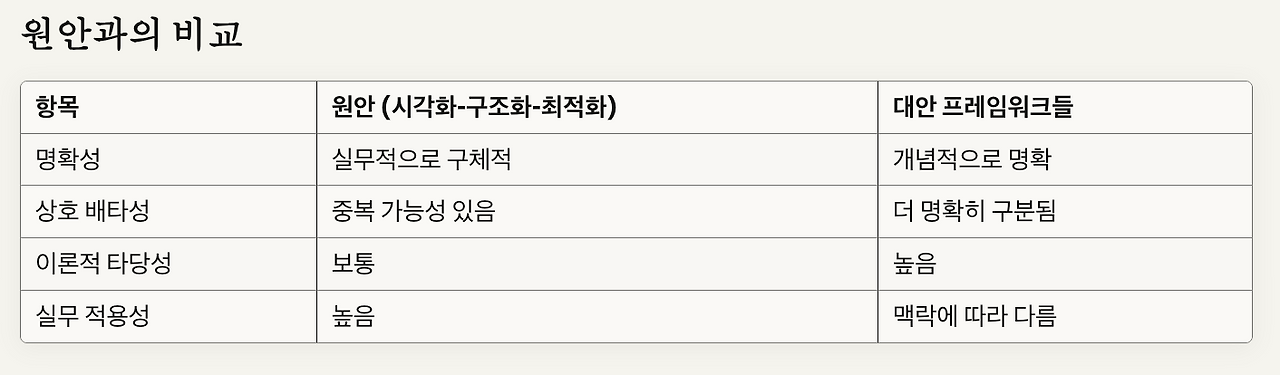 두 번째는 빠짐없이 망라한(MECE) 점에서는 좋지만, 지나치게 현학적이거나 작위적인 느낌이 들었습니다.