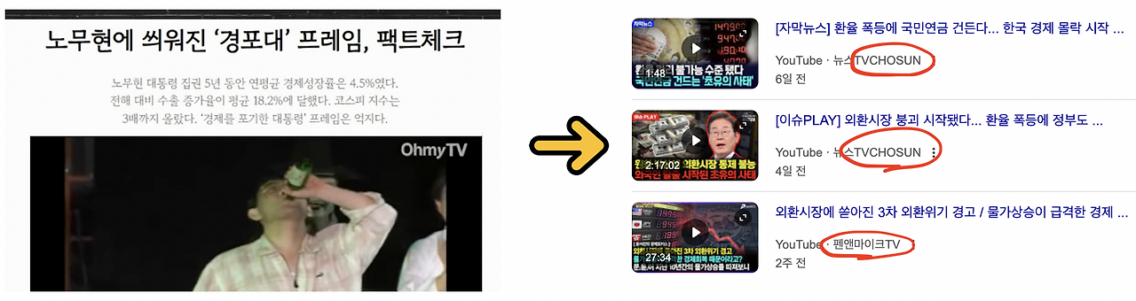 앞서 소개했던 매불쇼 영상을 보면 노무현 정부 때 现국힘의원들이 '경포대'라고 허위 사실을 이용한 언플을 했던 내용을 소개합니다. 소주 나발을 부는 모습을 한 사람은 TK 주호영 의원입니다. 노무현 정권 때 쓰던 방법을 아직도 쓰고 있습니다.