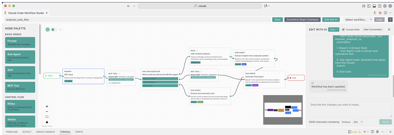 그랬더니 바로 어제저녁 살펴본 구글 오팔 데모 영상이 떠올랐습니다. 목표 시장만 두고 보면 구글 오팔은 Claude Code Workflow Studio와 겹칩니다. 경쟁 제품이라 할 수 있겠죠. 둘 다 아직 초기 버전이지만요.